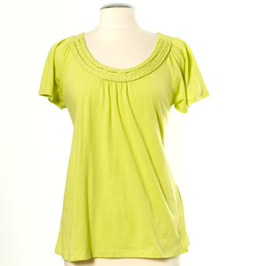 This top has the same type of flutter sleeves and the wide, scooped collar. My shirt had a ribbed yoke collar (this one is braided) and it is purple. When I wore it, I felt like a grape. It was too long and too big and too plain and too purple!